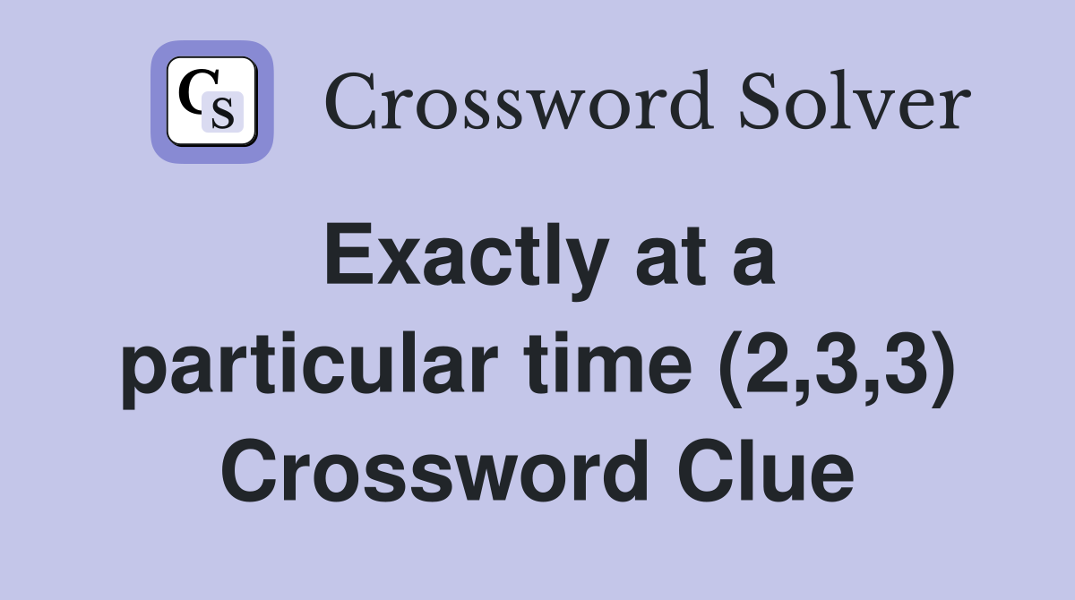 Exactly at a particular time (2 3 3) Crossword Clue Answers