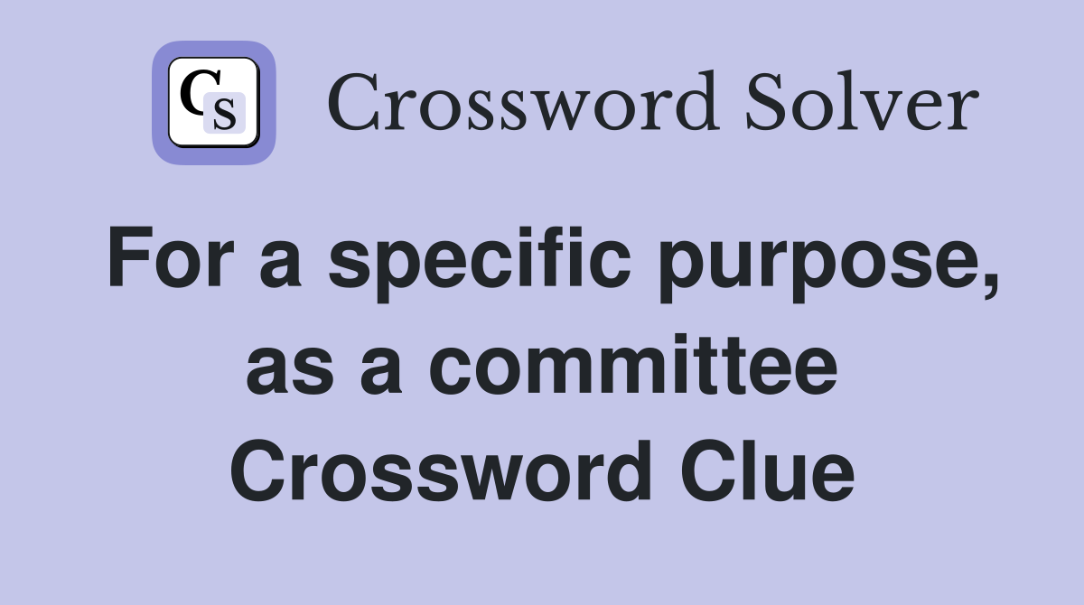 Here are some of the images for For A Particular Purpose Crossword Clue that we found in our website database.