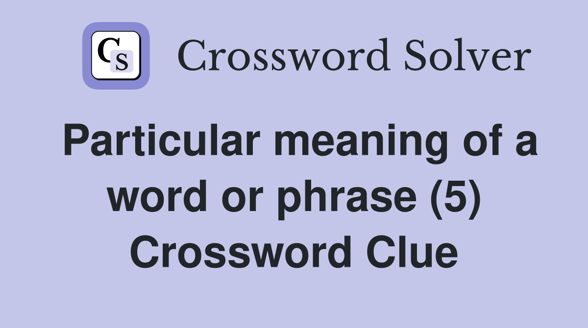 Particular meaning of a word or phrase (5) Crossword Clue Answers
