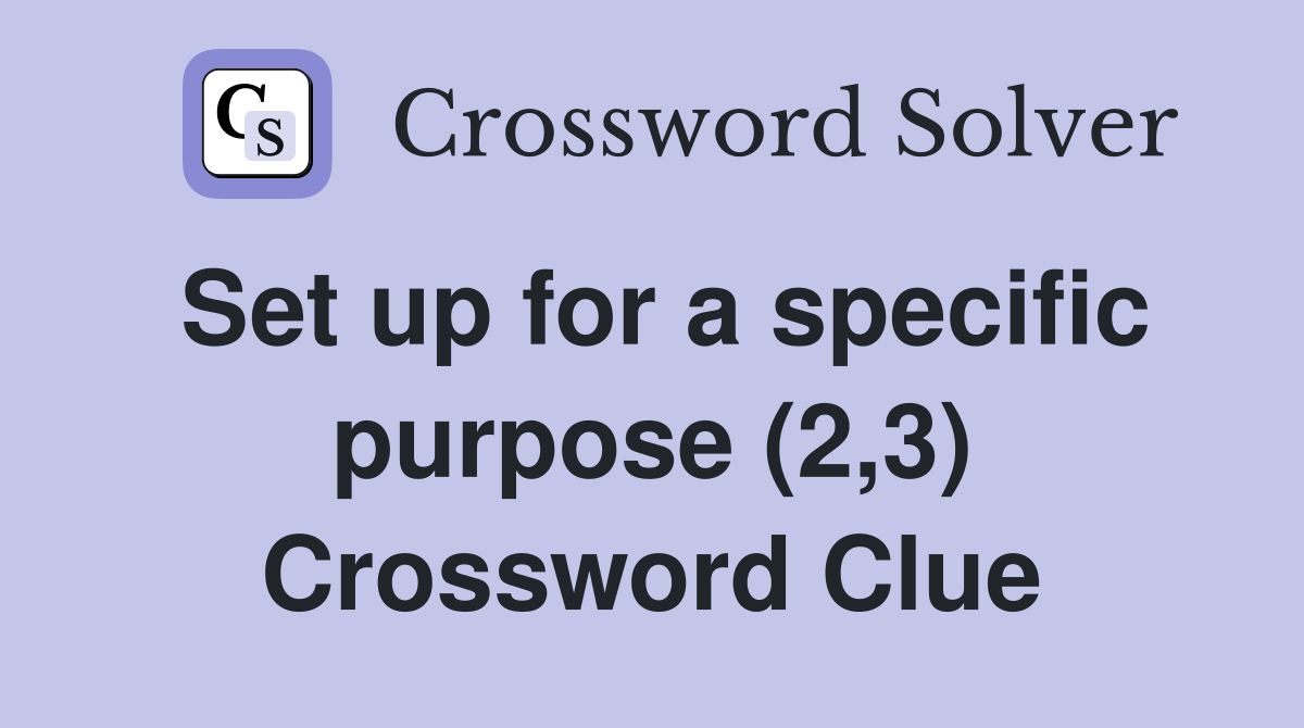 Set up for a specific purpose (2 3) Crossword Clue Answers