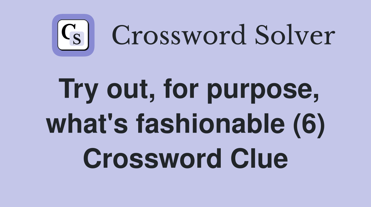 Try out for purpose what s fashionable (6) Crossword Clue Answers