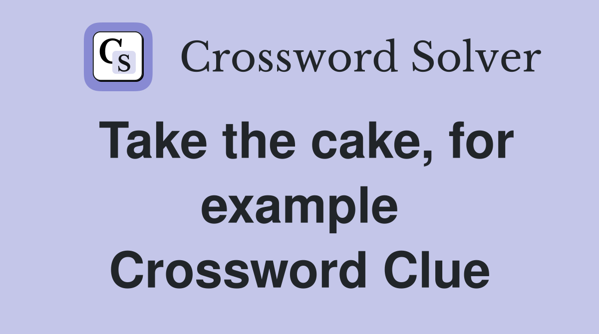 Take the cake for example Crossword Clue Answers Crossword Solver