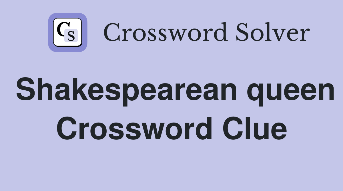 Shakespearean queen Crossword Clue Answers Crossword Solver