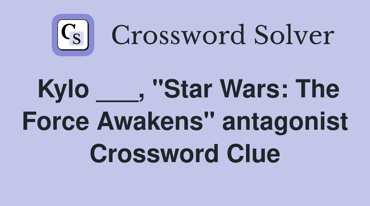 Kylo quot Star Wars: The Force Awakens quot antagonist Crossword Clue