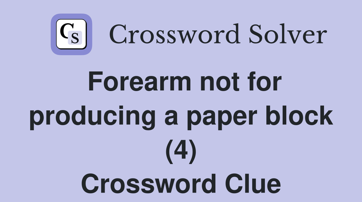 Forearm not for producing a paper block (4) Crossword Clue Answers