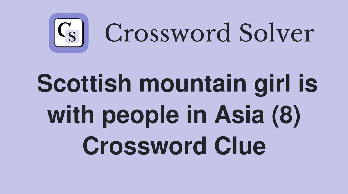 Scottish mountain girl is with people in Asia (8) Crossword Clue