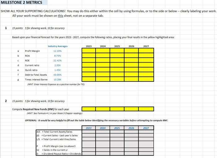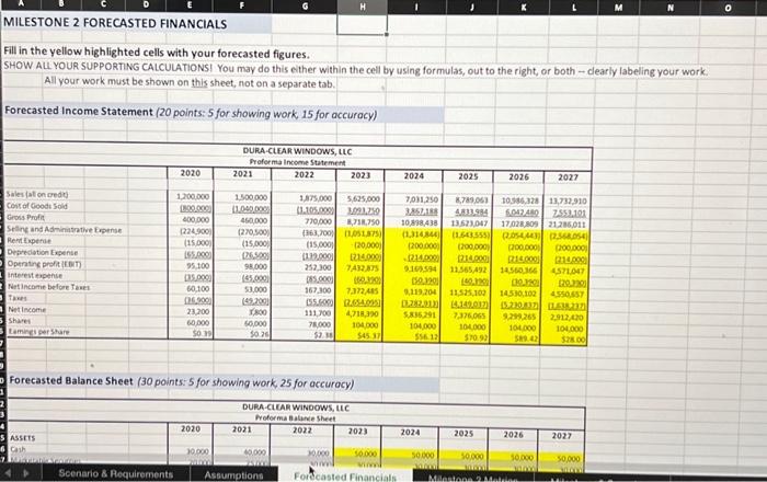 MILESTONE 2 FORECASTED FINANCIALS Fill in the yellow Chegg com