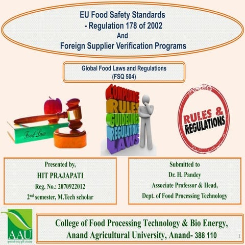 EU Food Safety Standards Regulation 178 of 2002 Foreign Supplier