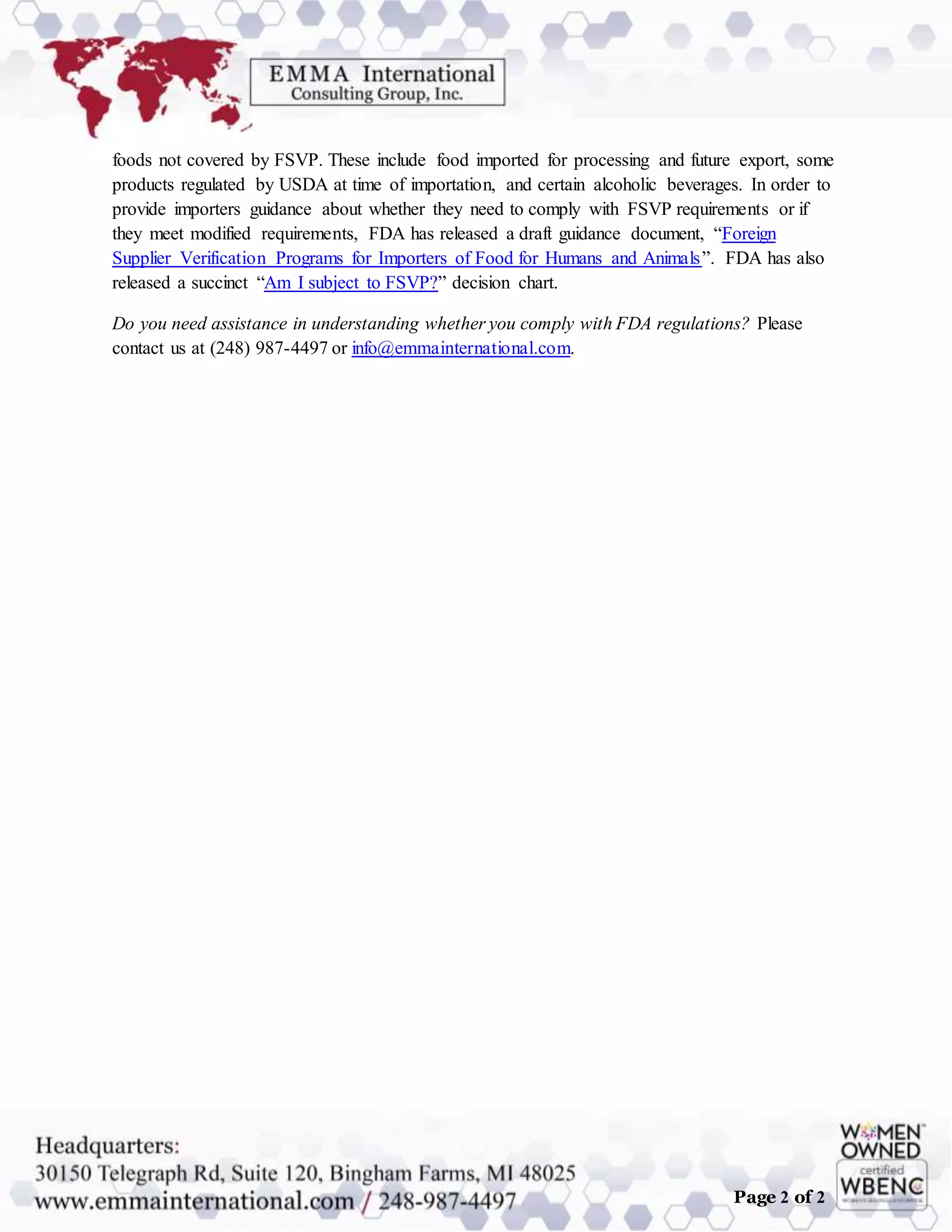 FDA s Foreign Supplier Verification Program (FSVP) Rule: What You Need