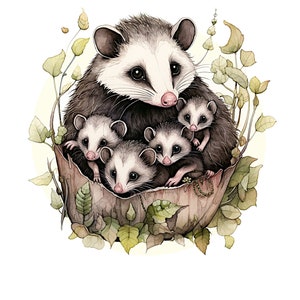 Possum Mom With Baby Oppossum PNG Woodland Baby Animals Digital