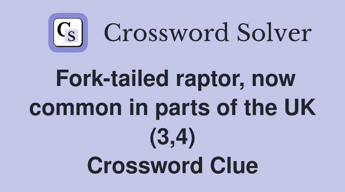 Fork tailed raptor now common in parts of the UK (3 4) Crossword