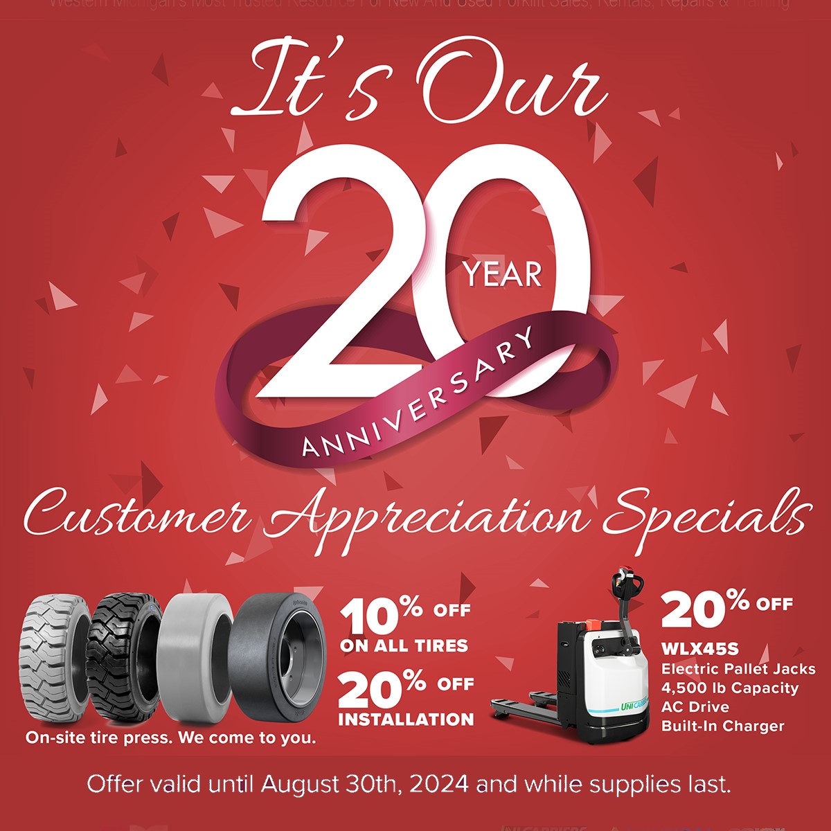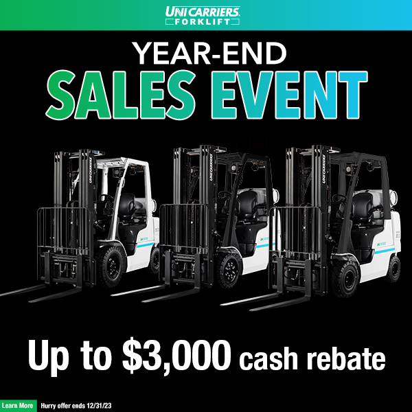 Up to $3000 factory cash rebate on UniCarriers Forklifts of Michigan