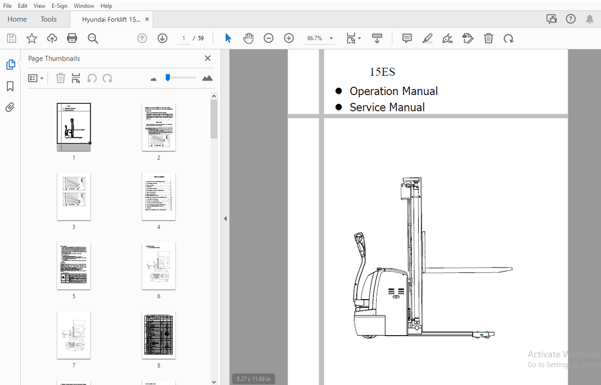 Hyundai Forklift 15ES Operation Service Manual PDF DOWNLOAD