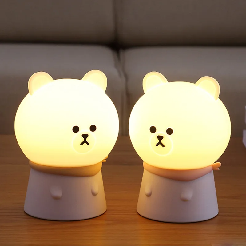 Creative LED Silicone Animal Bear Touch Night Light USB Charging Port