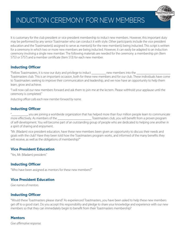 Induction Ceremony For New Members PDF Human Communication