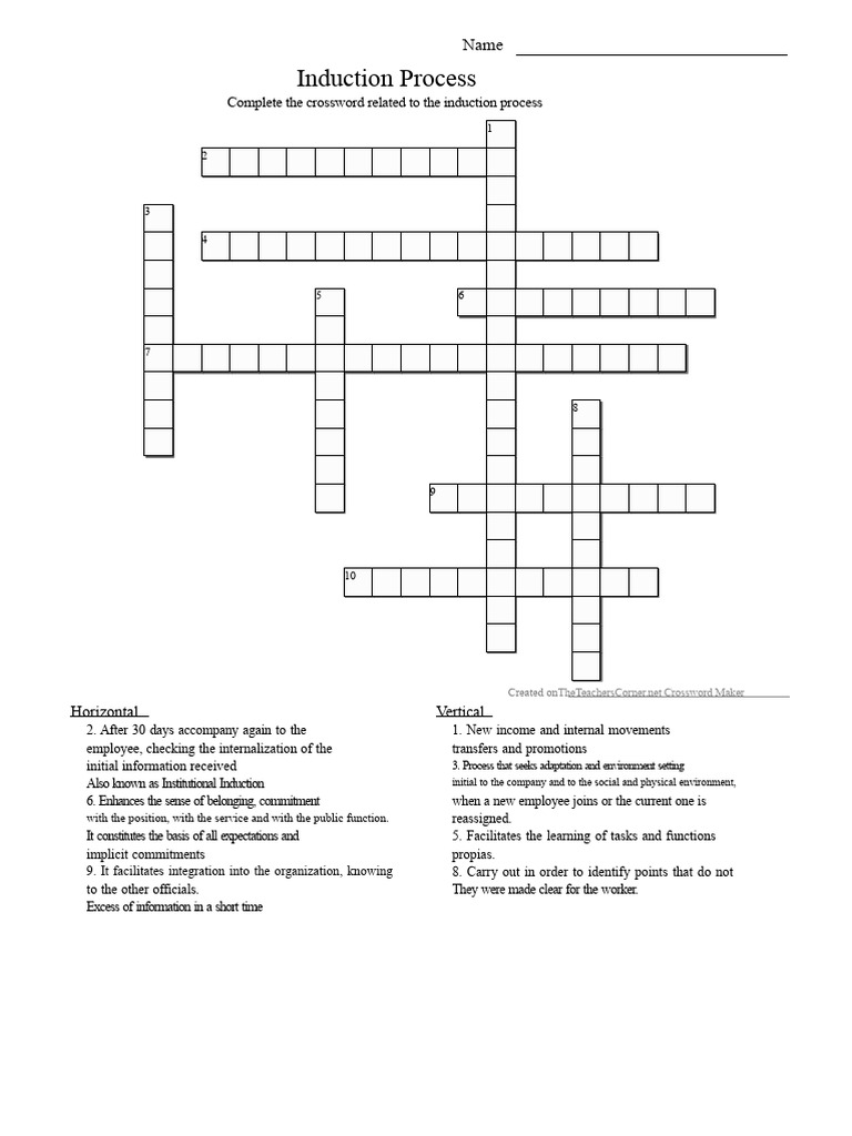 Induction Process Crossword 1 PDF