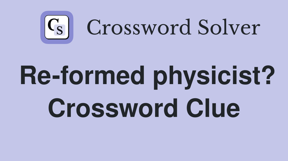 Re formed physicist? Crossword Clue Answers Crossword Solver