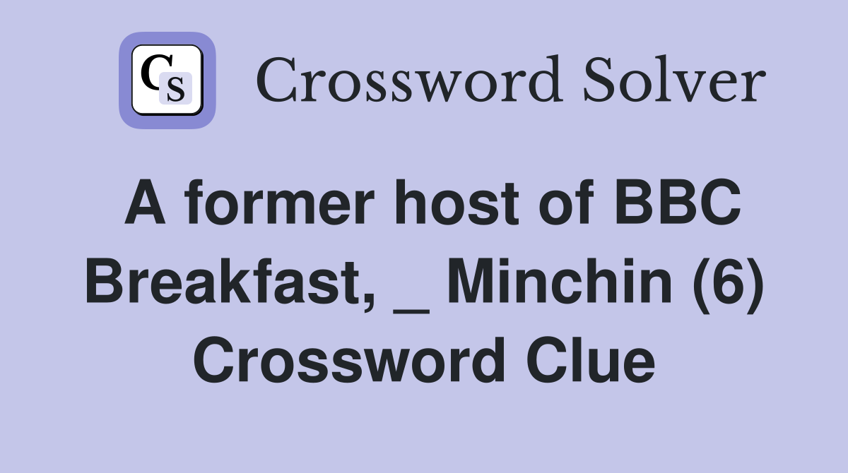 A former host of BBC Breakfast Minchin (6) Crossword Clue Answers