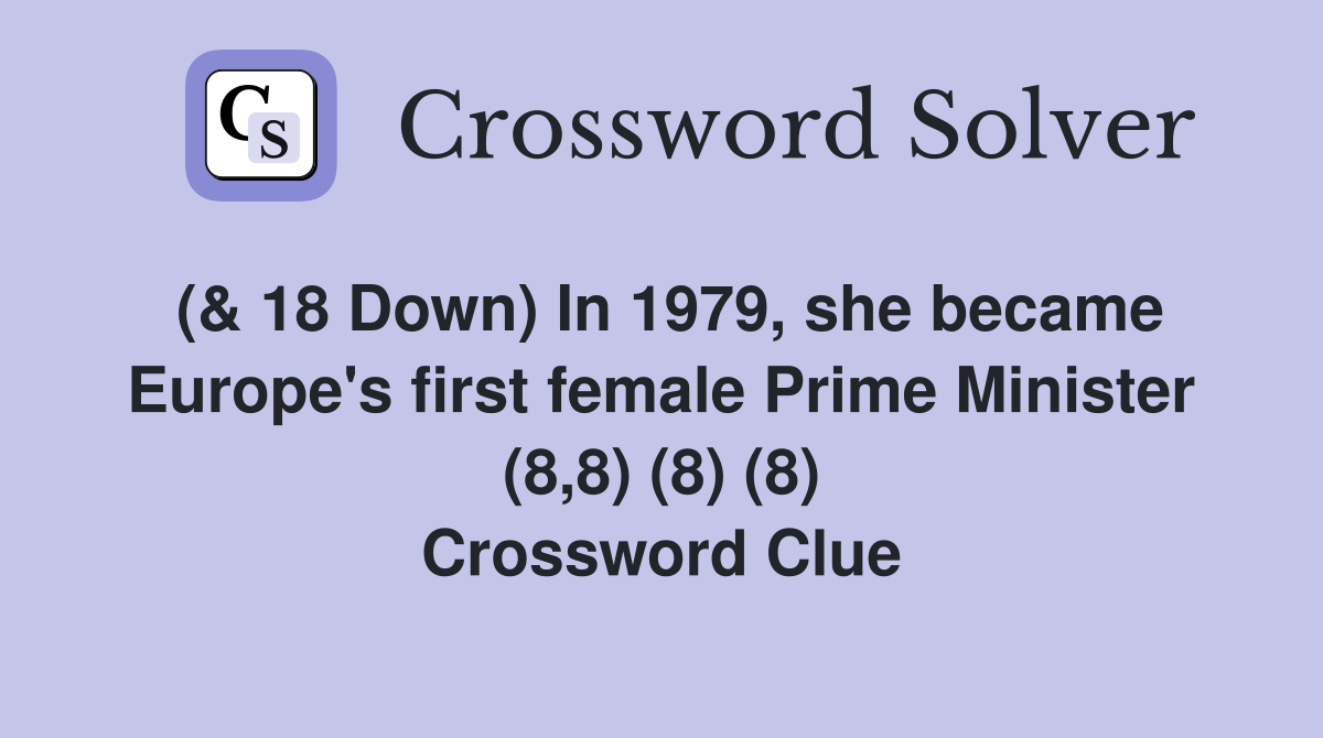 ( 18 Down) In 1979 she became Europe s first female Prime Minister (8