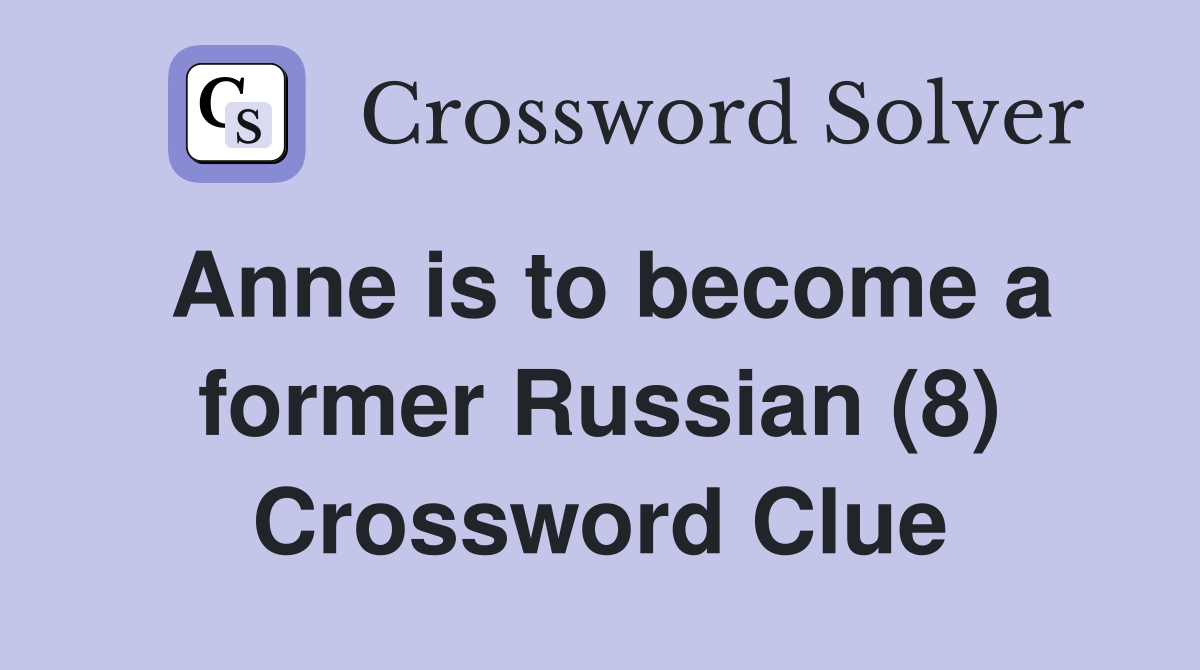 Anne is to become a former Russian (8) Crossword Clue Answers