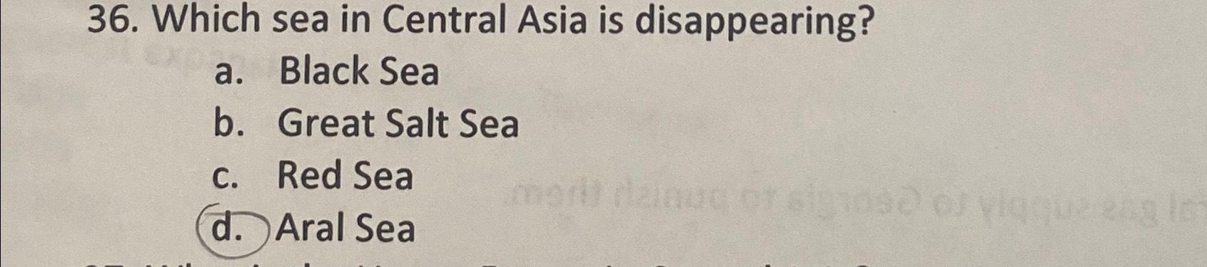 Solved Which sea in Central Asia is disappearing?a Black Chegg com
