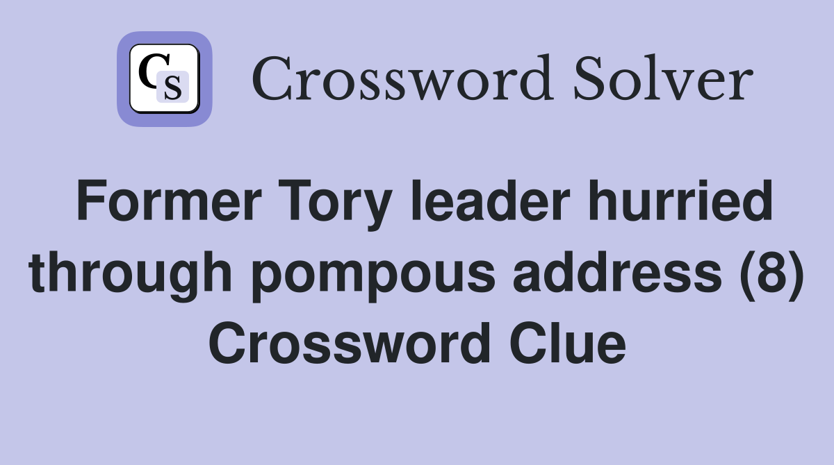 Former Tory leader hurried through pompous address (8) Crossword Clue