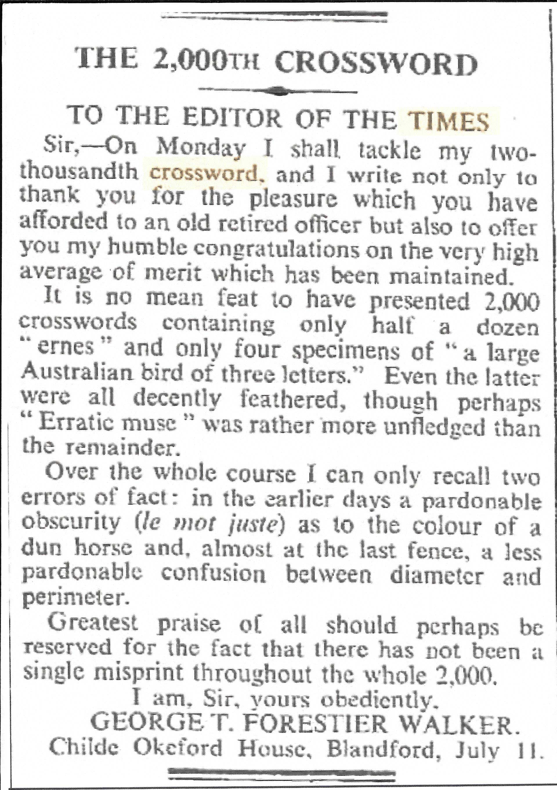 The first crossword puzzle in the New York Times from 1942 is