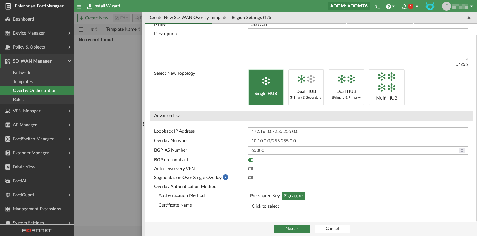 Configuring an SD WAN overlay template FortiManager 7 4 5 Fortinet