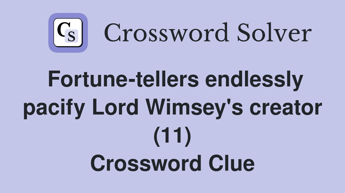 Fortune tellers endlessly pacify Lord Wimsey s creator (11) Crossword