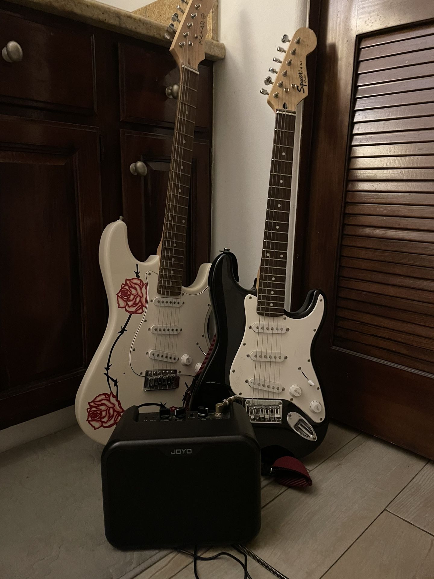 Fender Squire MINI And Hand Painted Mahar Electric Guitars With A Strap