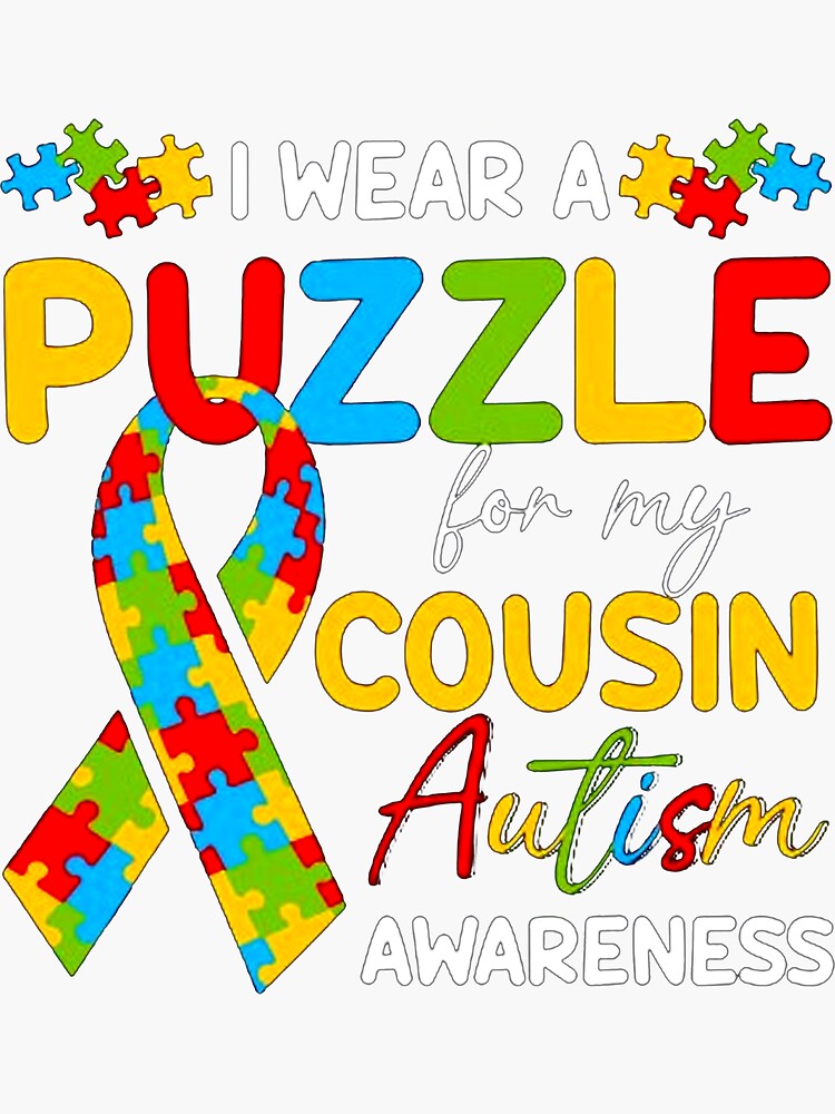 quot Autism Cousin Wear Puzzle Awareness quot Sticker for Sale by alvara 3