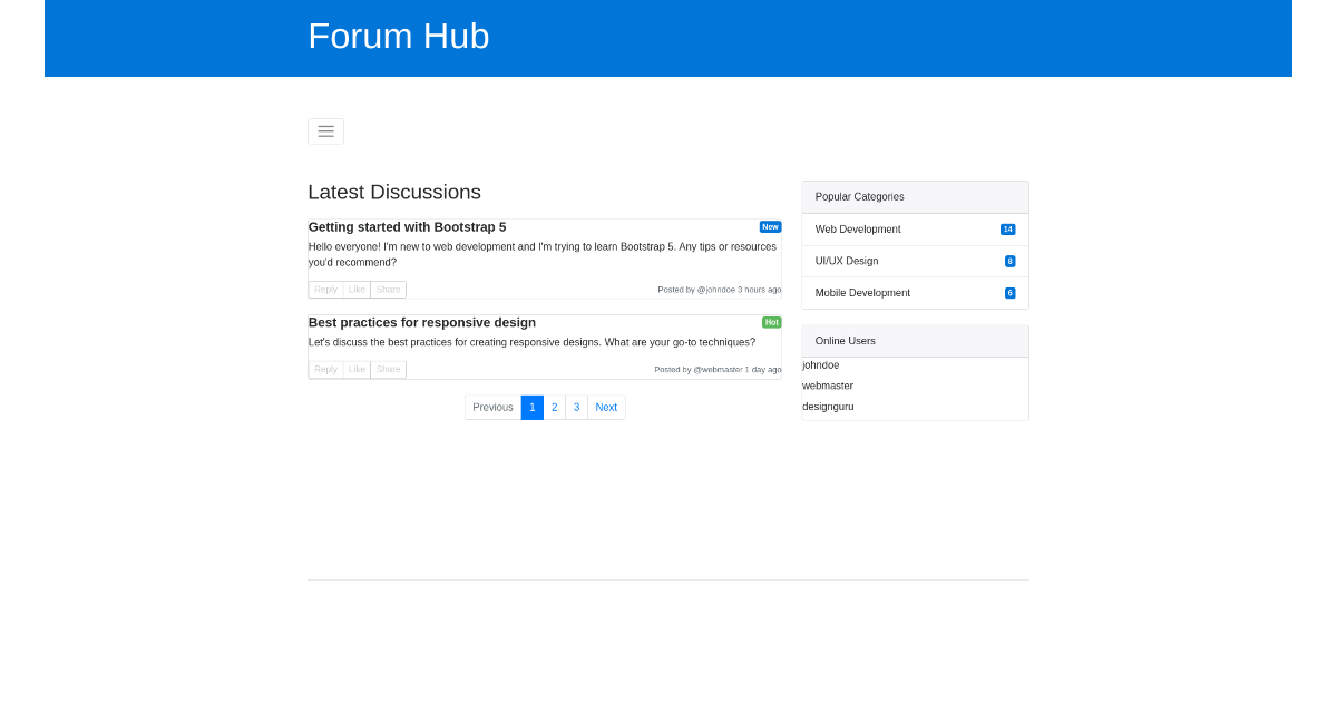 Forum Website Template Free Html Bootstrap Component
