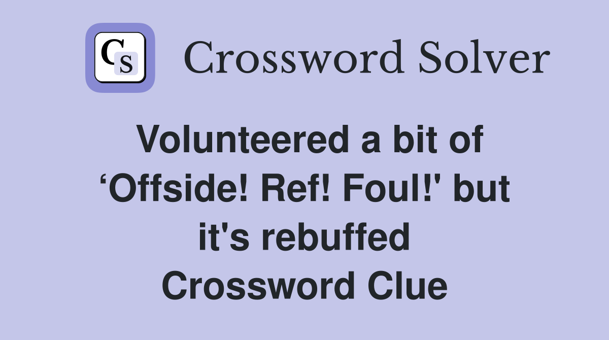 Volunteered a bit of Offside Ref Foul #39 but it #39 s rebuffed