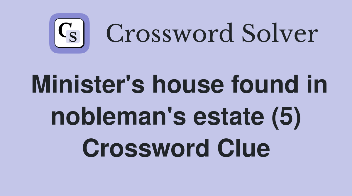 Minister #39 s house found in nobleman #39 s estate (5) Crossword Clue