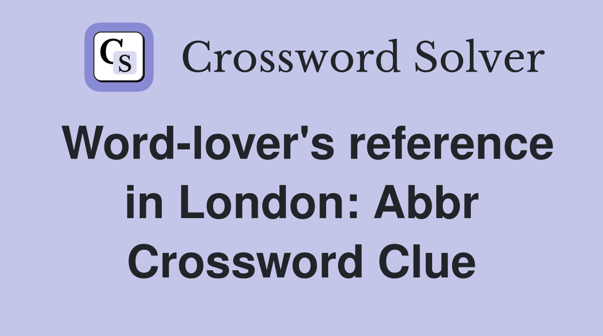 Word lover #39 s reference in London: Abbr Crossword Clue Answers