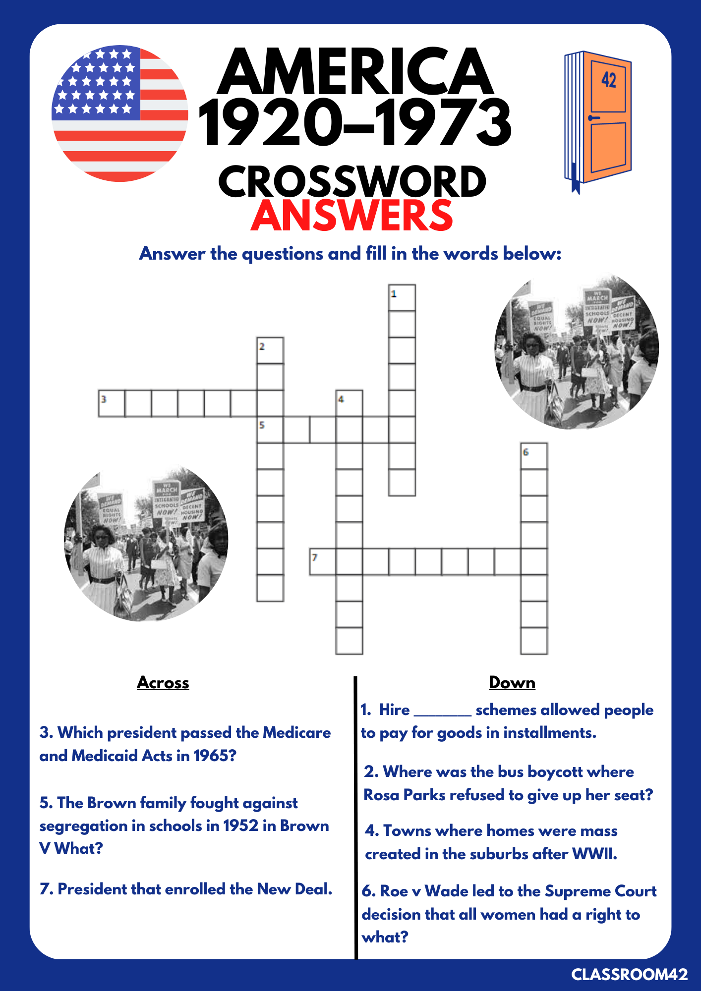 America 1920 1973 Crossword Classroom 42