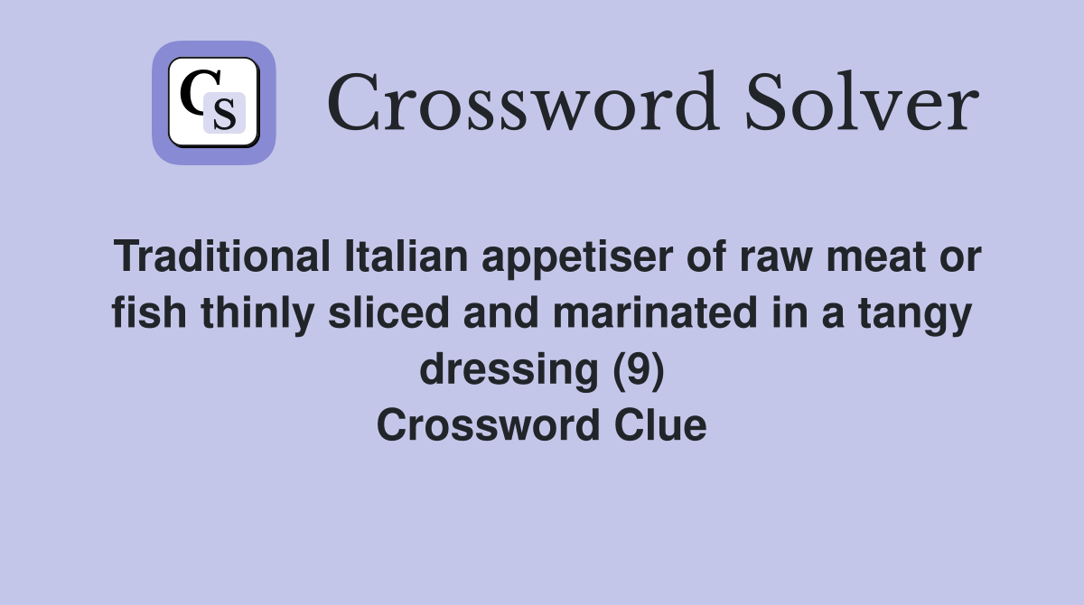 Traditional Italian appetiser of raw meat or fish thinly sliced and