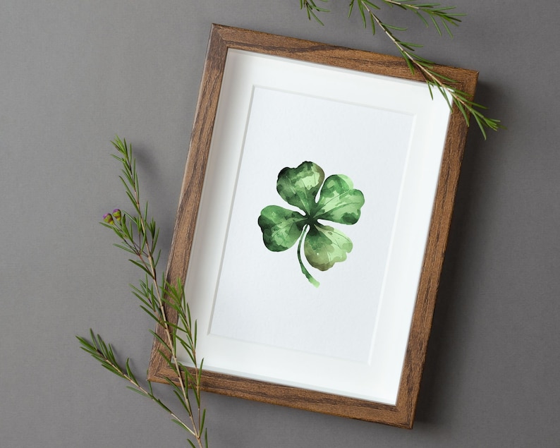 Minimalist Four Leaf Clover Digital Print St Patrick #39 s Day Watercolor
