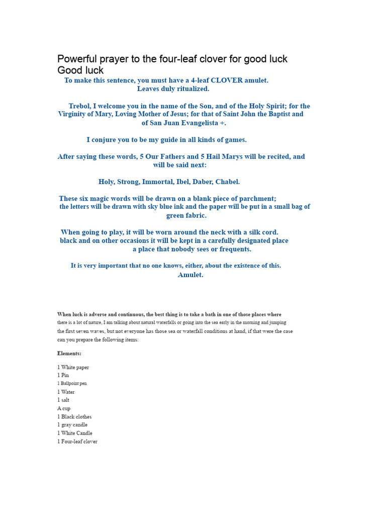 Powerful prayer to the Four Leaf Clover for good luck PDF Prayer
