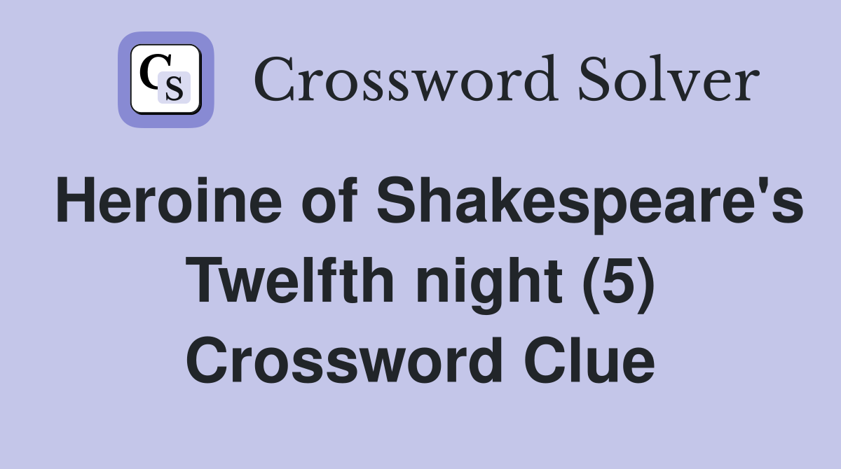 Heroine of Shakespeare #39 s Twelfth night (5) Crossword Clue Answers