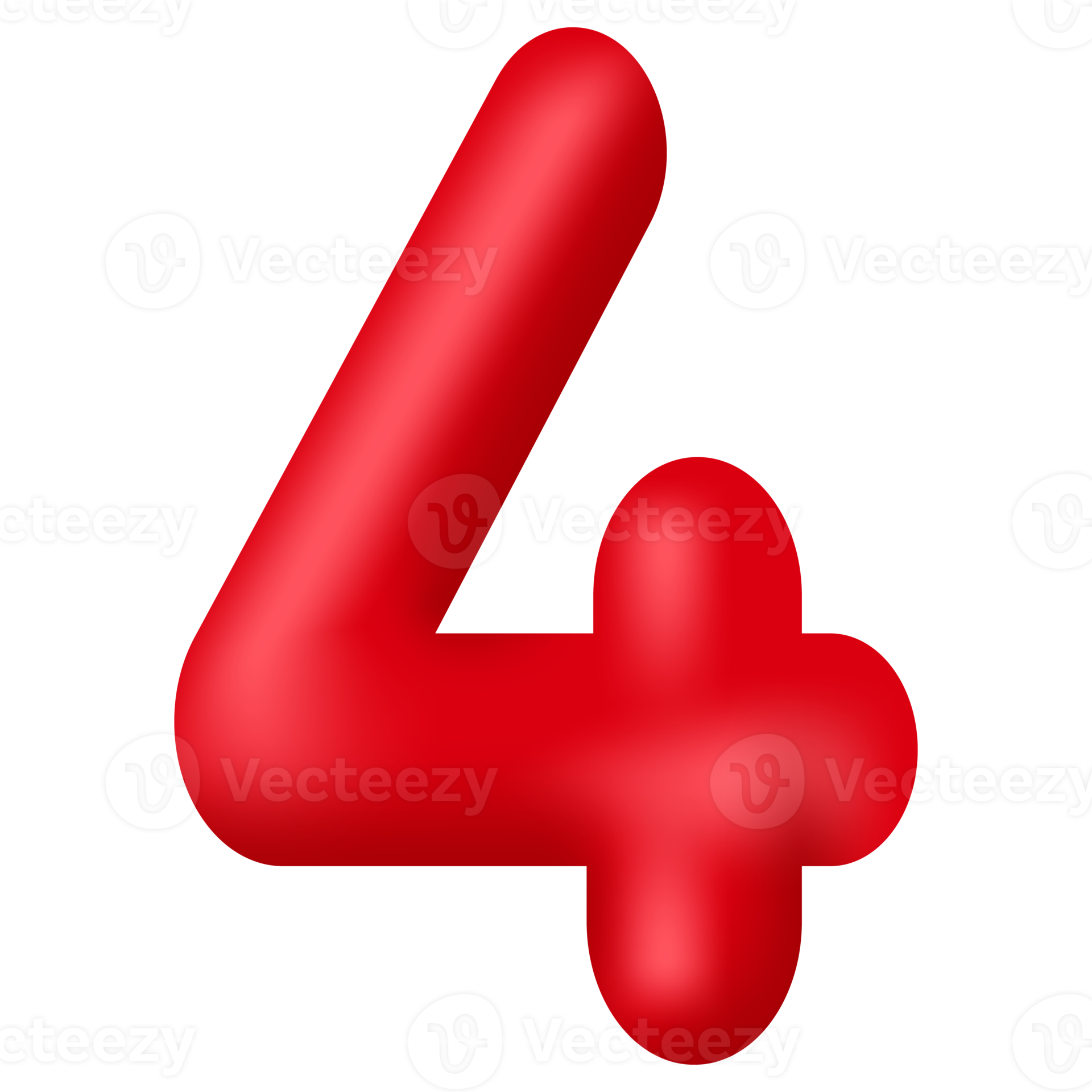 Red 3d number four isolated on transparent background Decorative