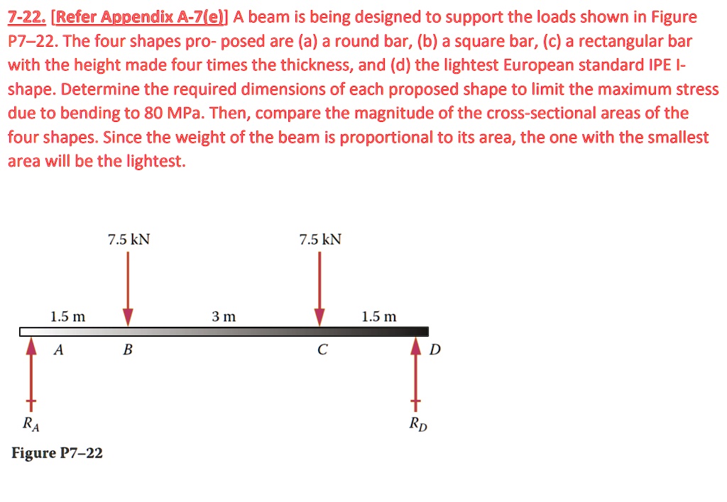 SOLVED: 7 22 Refer Appendix A 7(e) A beam is being designed to