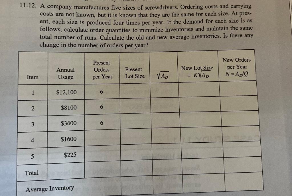 Solved 1 12 A company manufactures five sizes of Chegg com