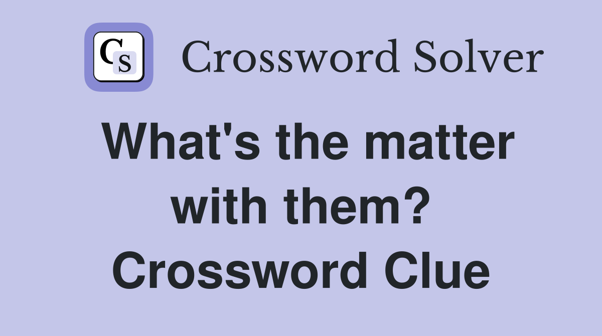 What #39 s the matter with them? Crossword Clue Answers Crossword Solver