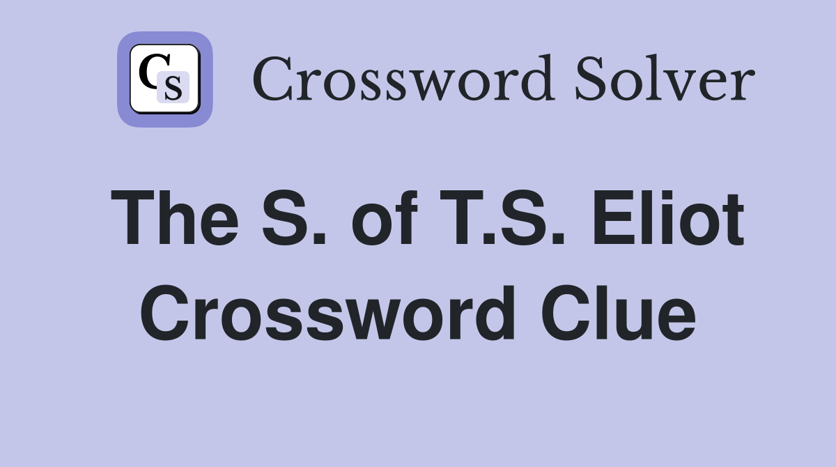 The S of T S Eliot Crossword Clue Answers Crossword Solver