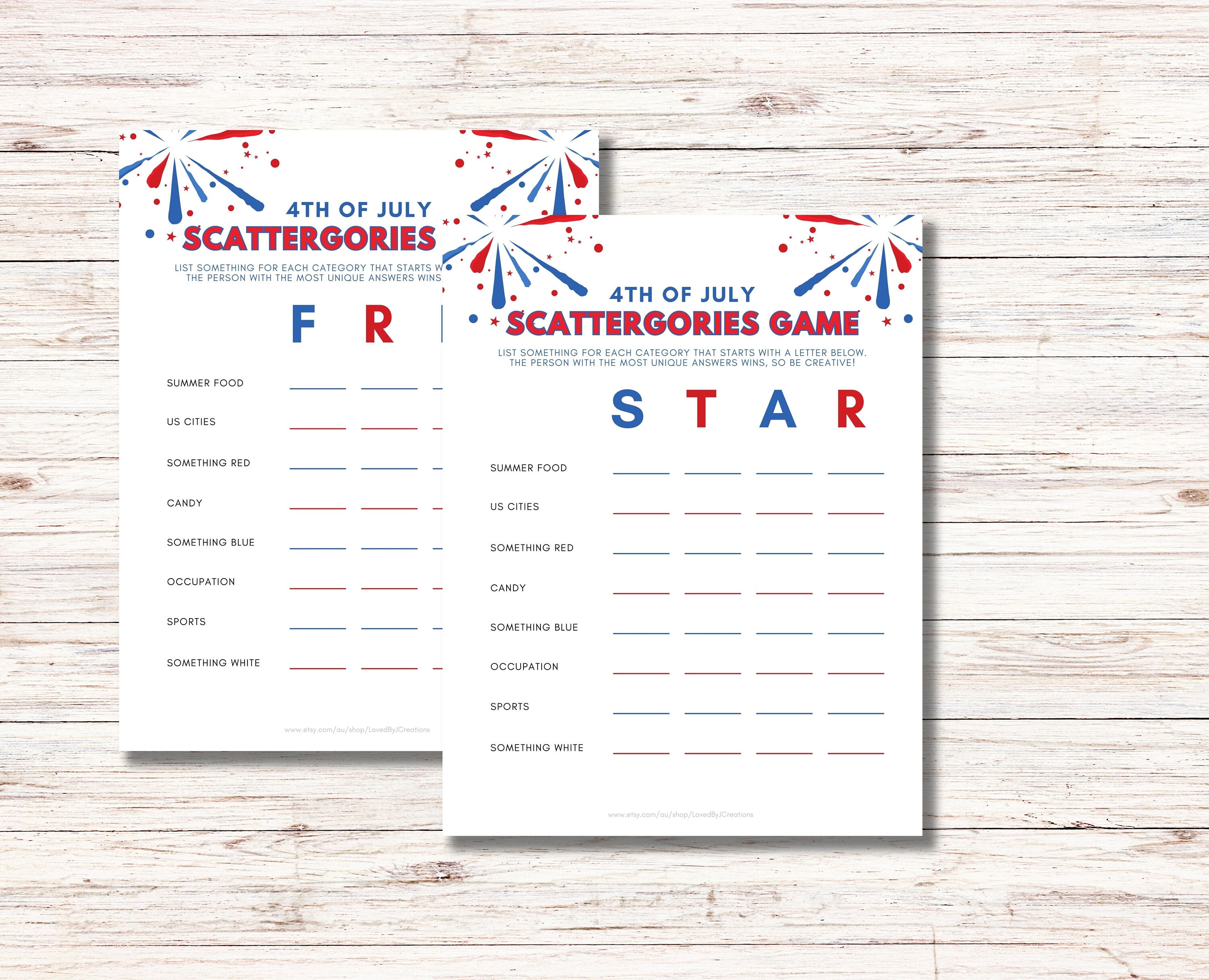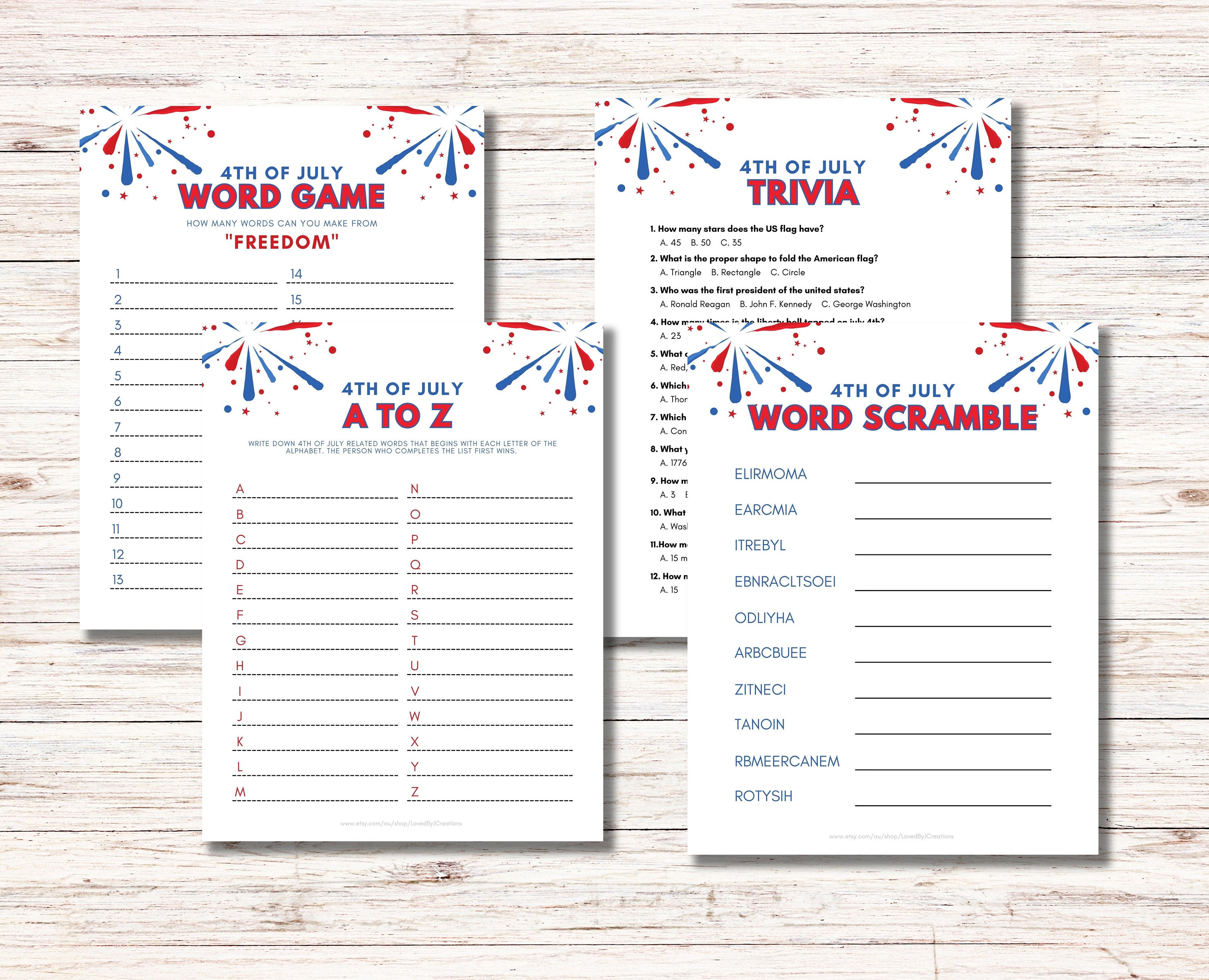 8 Fun Fourth of July Games Printable Fillable PDF Templates