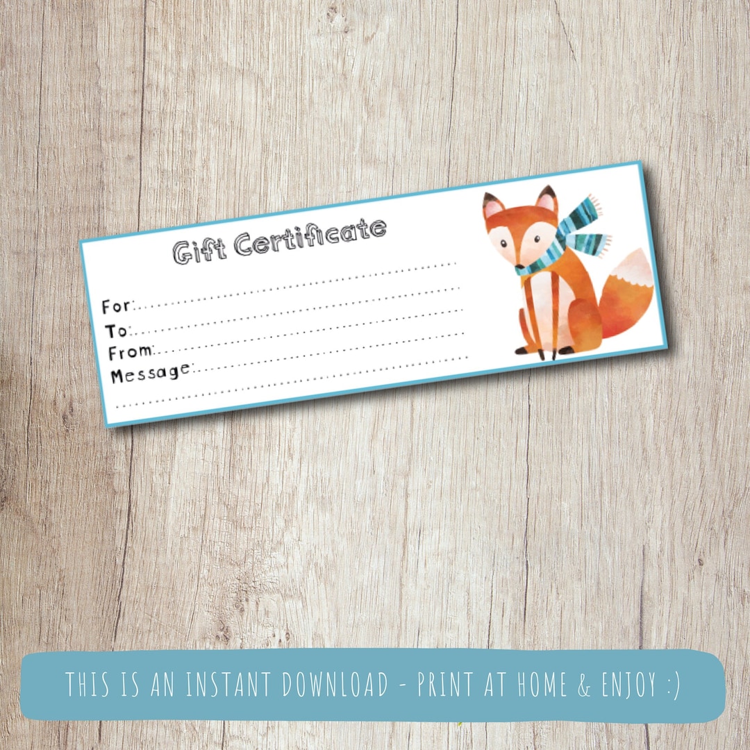 Printable Gift Certificate Template Fox Gift Token Digital Gift