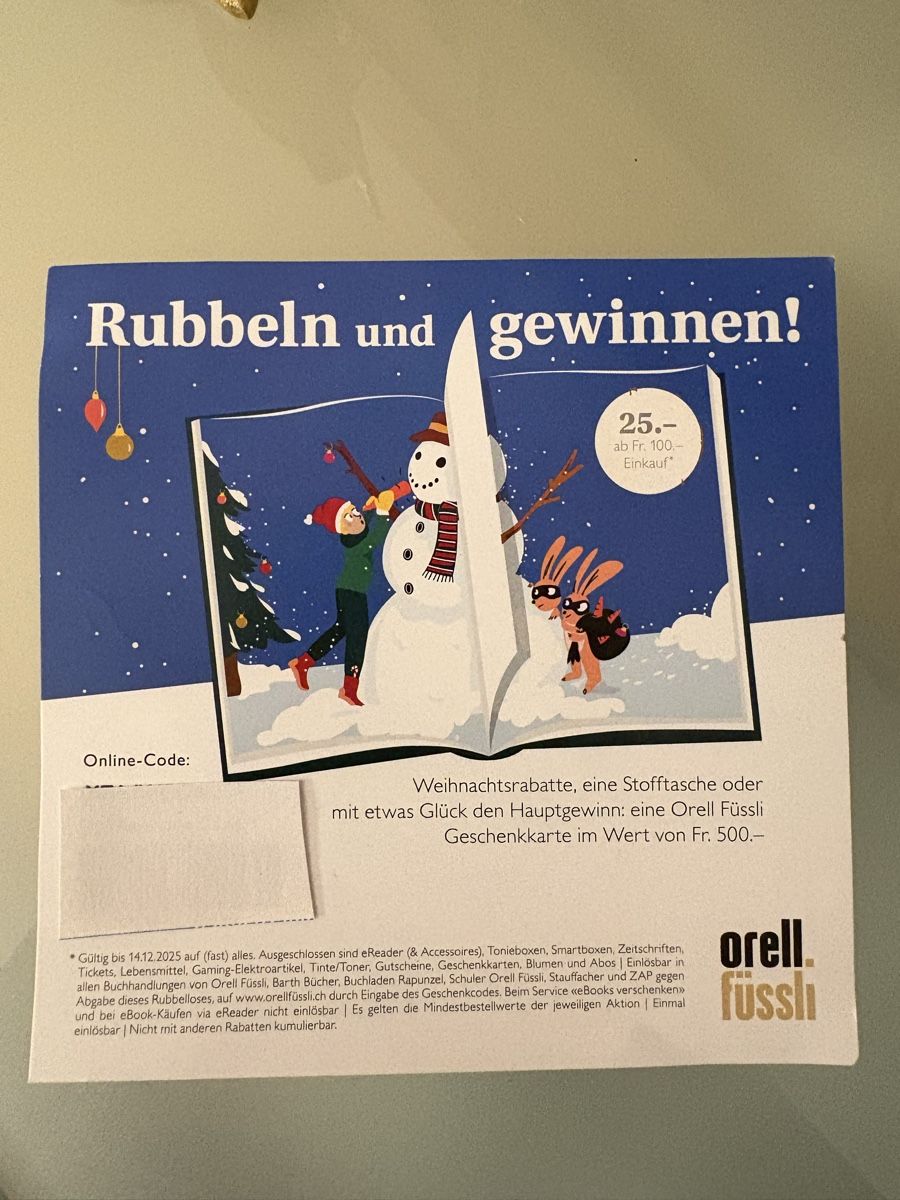 Orell Füssli Gutschein Fr 25 Rabatt ab Fr 100 Einkauf (Neu und