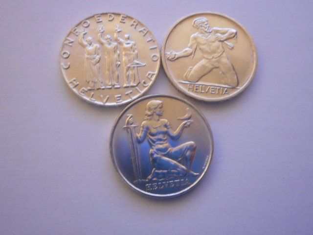 3 x 5 Fr silber Gedenkmünzen 1936/41/44 (Neu (gemäss Beschreibung)) in