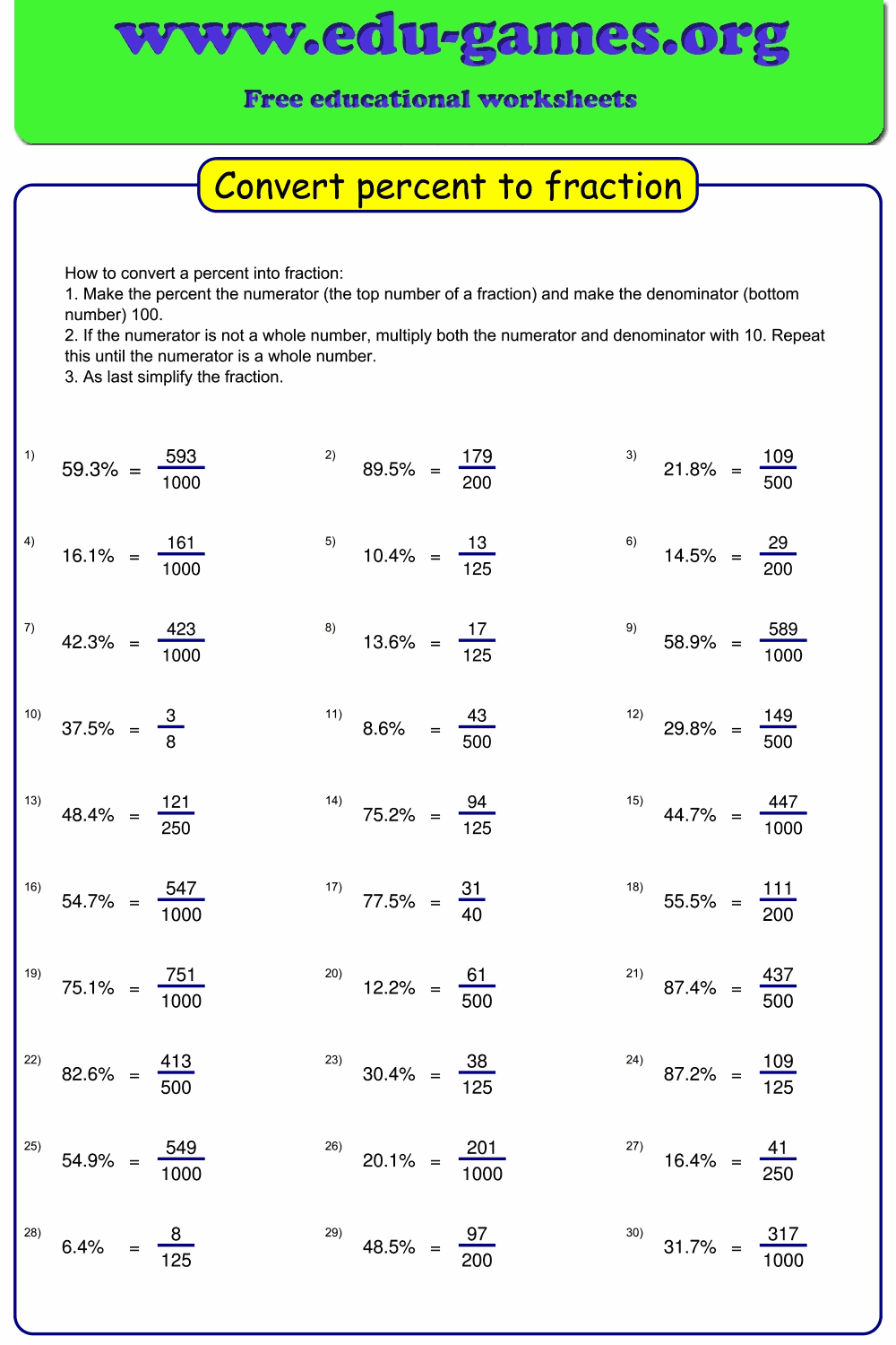 Convert percent to fraction worksheet maker Free Printable Worksheets